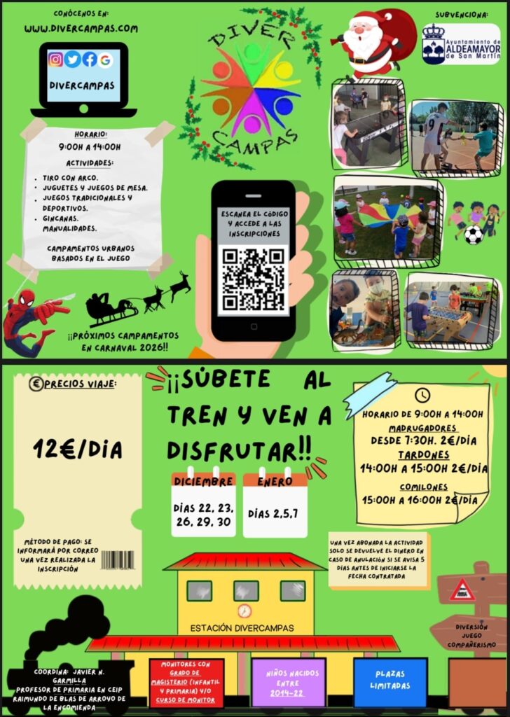 - Ofrece bastante cosas de cara a Diciembre: campamento, talleres, cotillón de Reyes… apunta e inscríbete